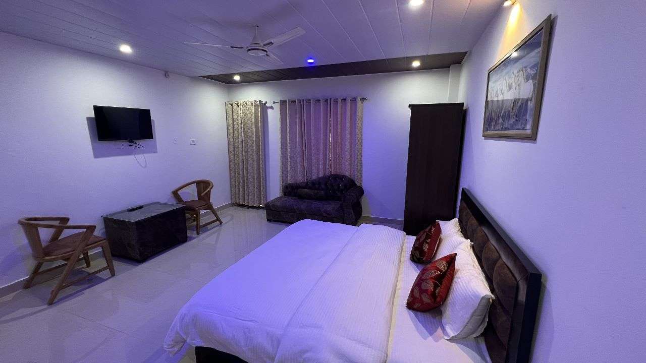 We have Suite Valley View rooms with a balcony which is for two adults but can accommodate a third person also with an extra mattress window facing the Valley. Rooms have a king-size bed, Electrical kettle for making tea/coffee, LED TV with tv set-up box, intercom & Free Wi-Fi access in the room.